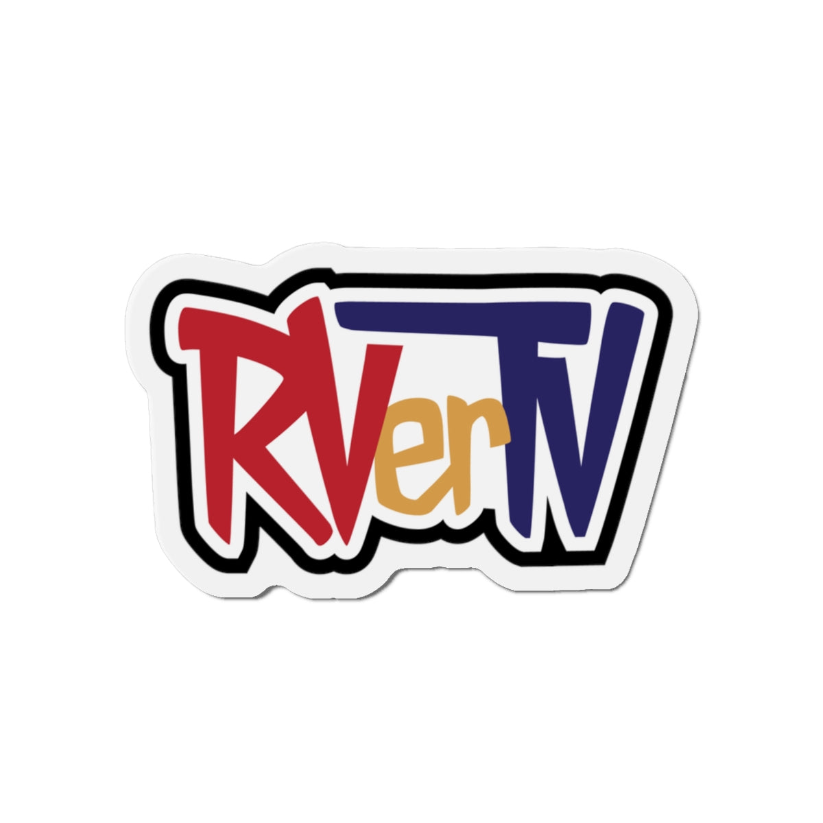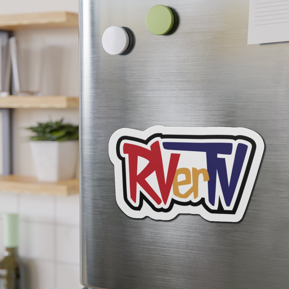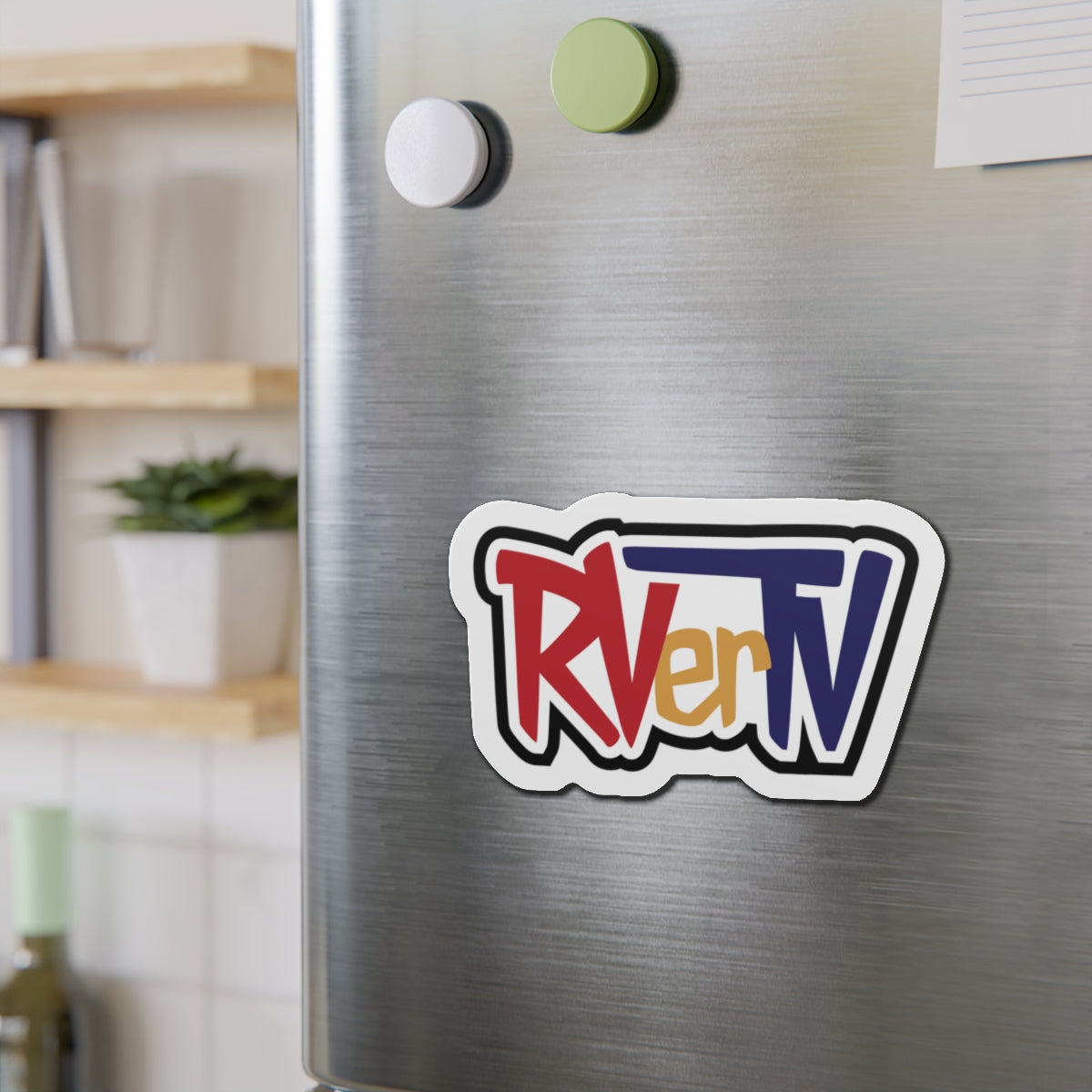 Our bold new RVerTV car magnet with vibrant red, yellow, and blue lettering that makes your RV adventures instantly recognizable on the road!