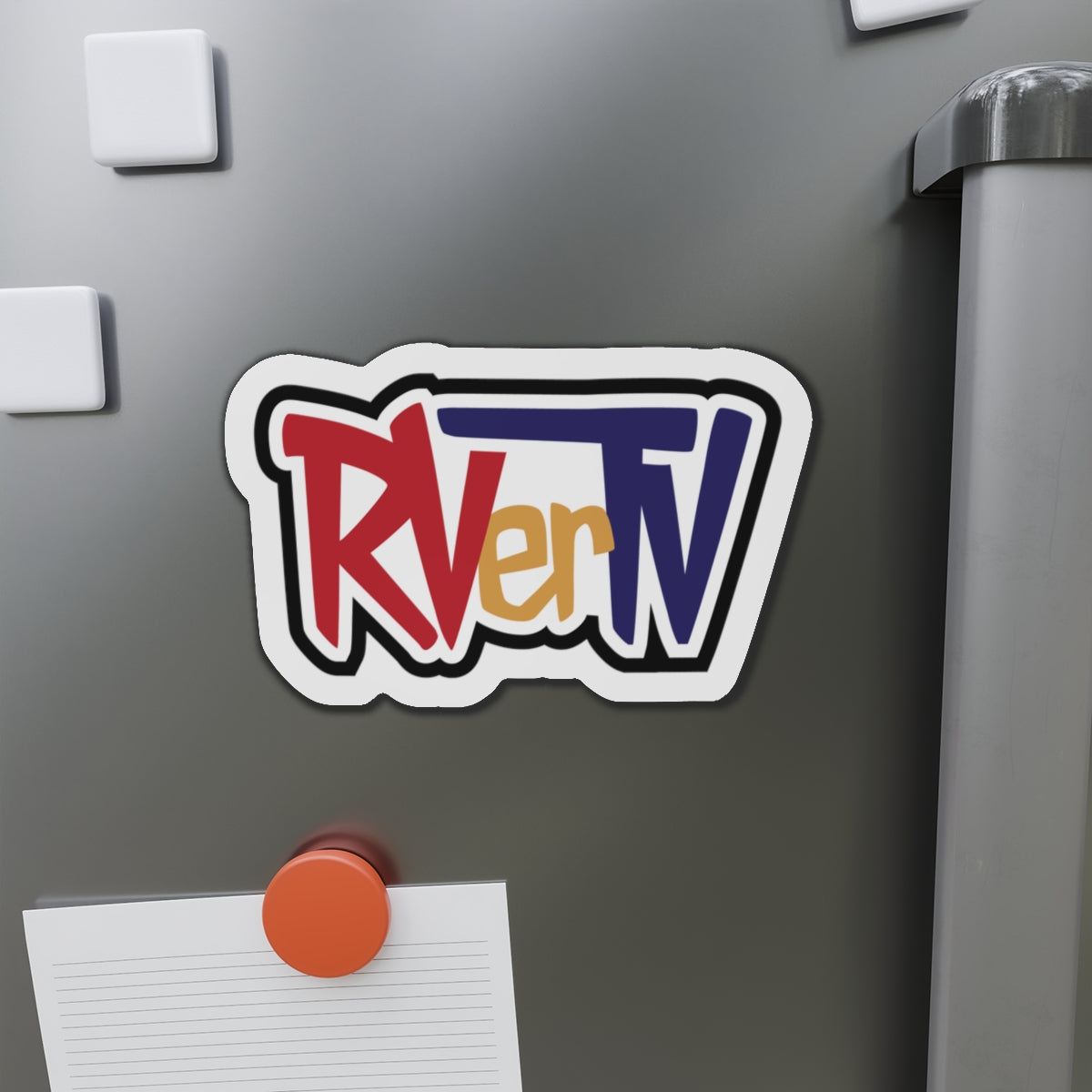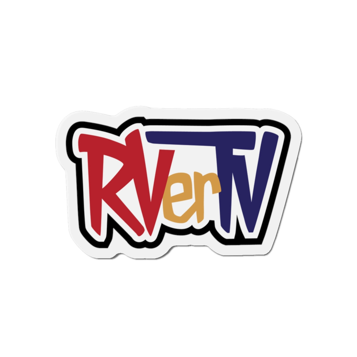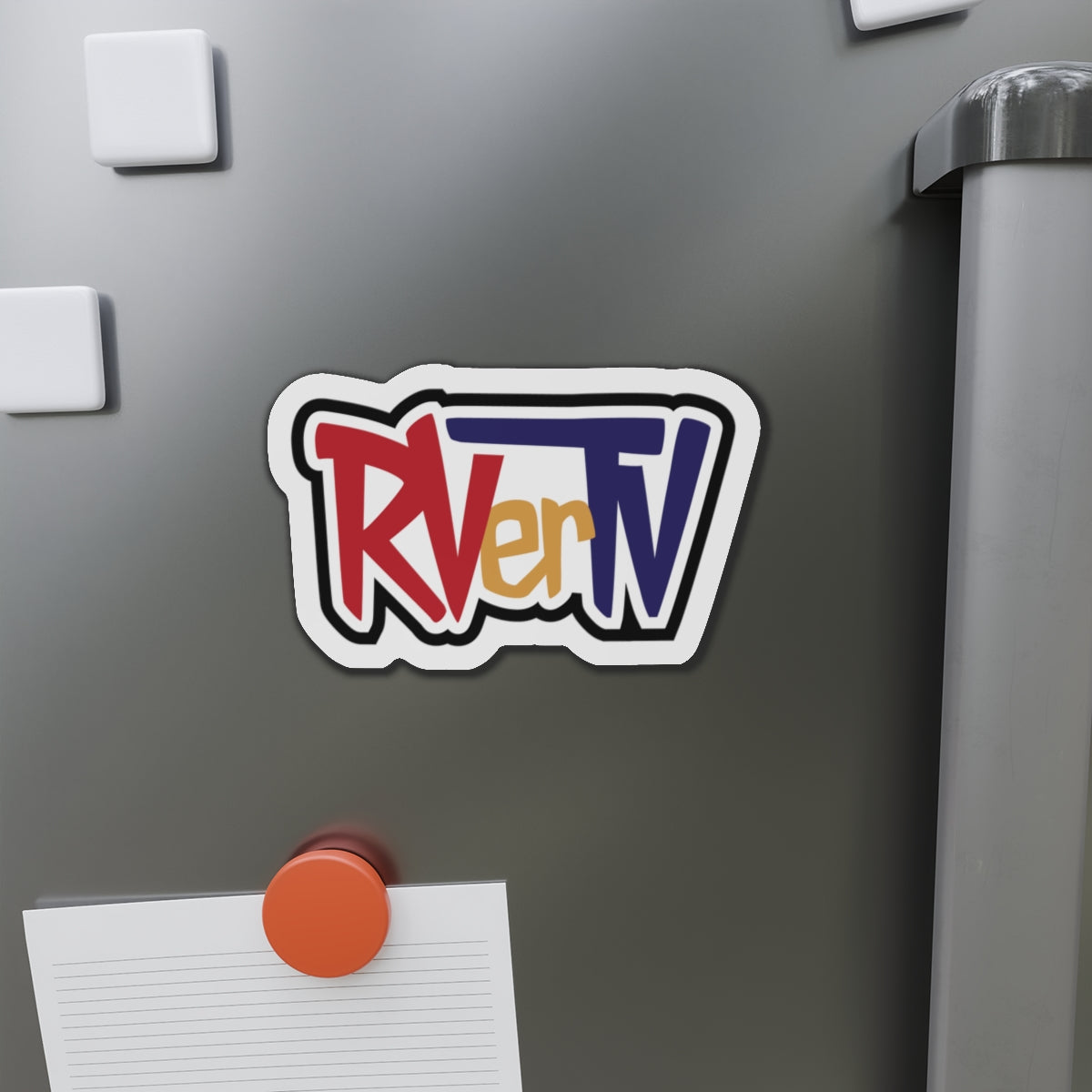 Our bold new RVerTV car magnet with vibrant red, yellow, and blue lettering that makes your RV adventures instantly recognizable on the road!