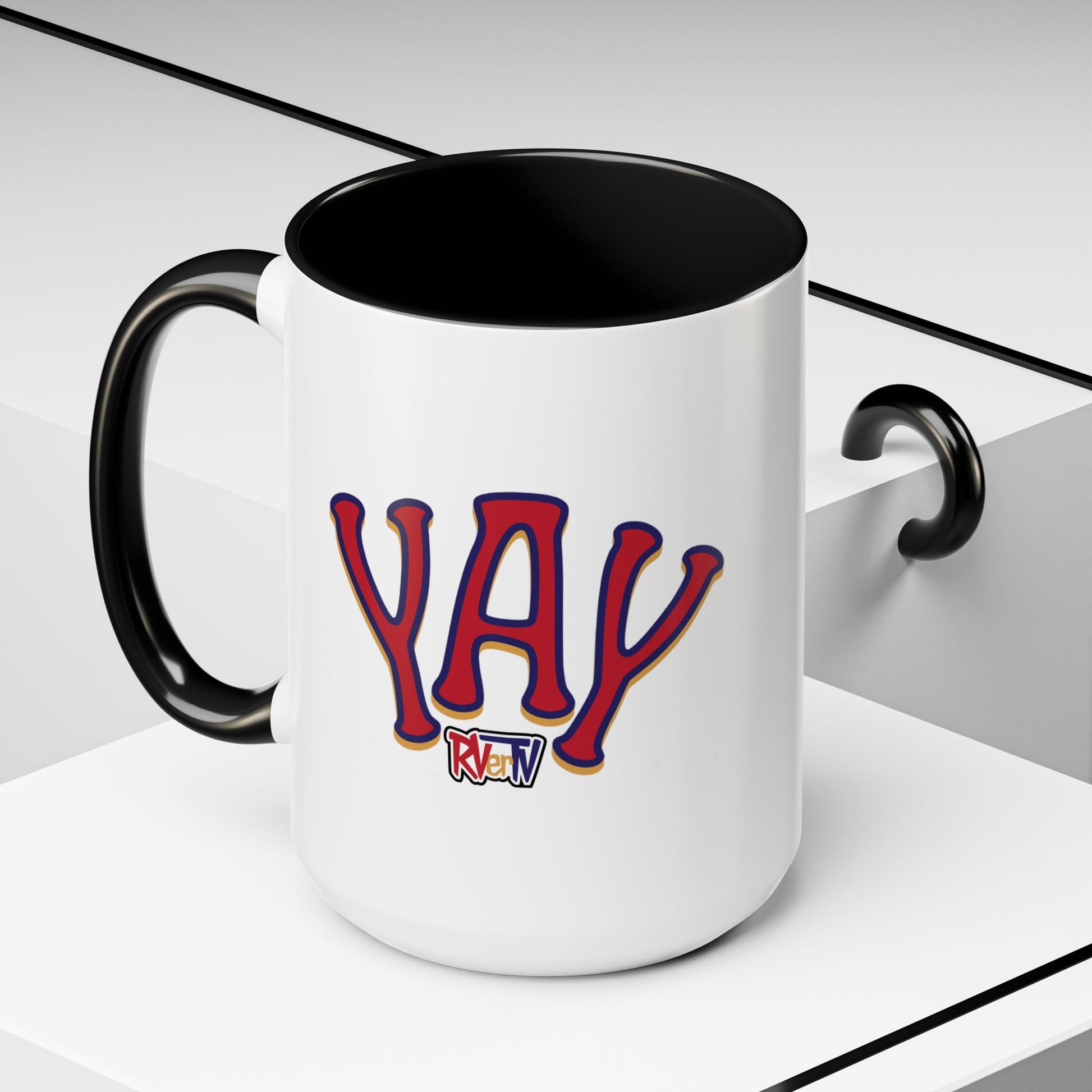 Kickstart your morning with a big ol' “YAY!” courtesy of the RVerTV 15 oz coffee mug! This mug, complete with the RVerTV logo and an enthusiastic “YAY” plastered on the front, is here to cheer you on—even if the only adventure today is finding your other sock. Perfect for days when you need an extra boost, it’ll have you saying “YAY!” with every sip—even if you’re just pretending to be excited about that 8 a.m. meeting!